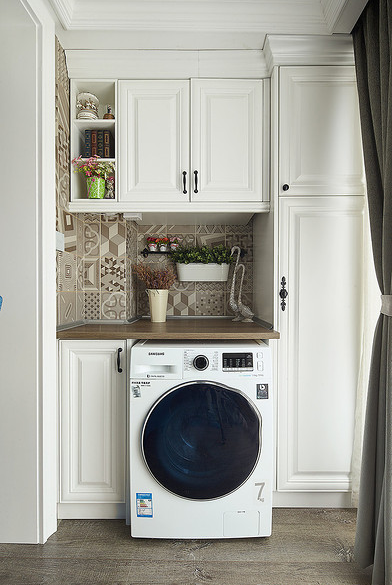 當(dāng)空間不夠用,洗衣機(jī)即便只有半平方米的大小也可能成為問題。所以在廚房空間配置時(shí),只需要在角落位置空出一個(gè)小櫥柜的位置,只要遠(yuǎn)離火源一些即可。