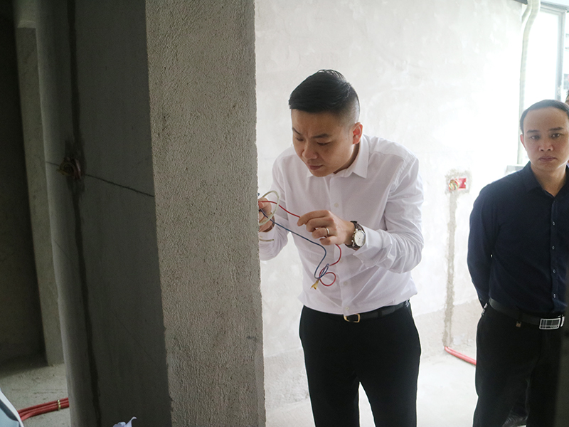丁總與質檢小組一同與項目經理進行溝通,聽取項目經理的心聲和意見,并強調了規(guī)范施工、文明施工、抓品質、做服務的重要性,必須要嚴格按照公司規(guī)定及標準進行施工。