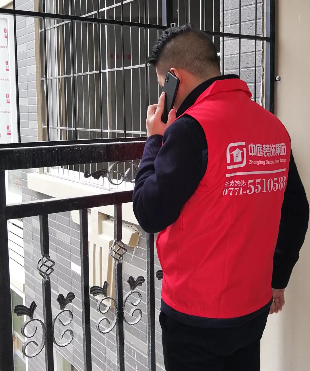 集團副總裁張總在現(xiàn)場電話回訪業(yè)主,同時對工地存在的一些細節(jié)問題提出解決方案。