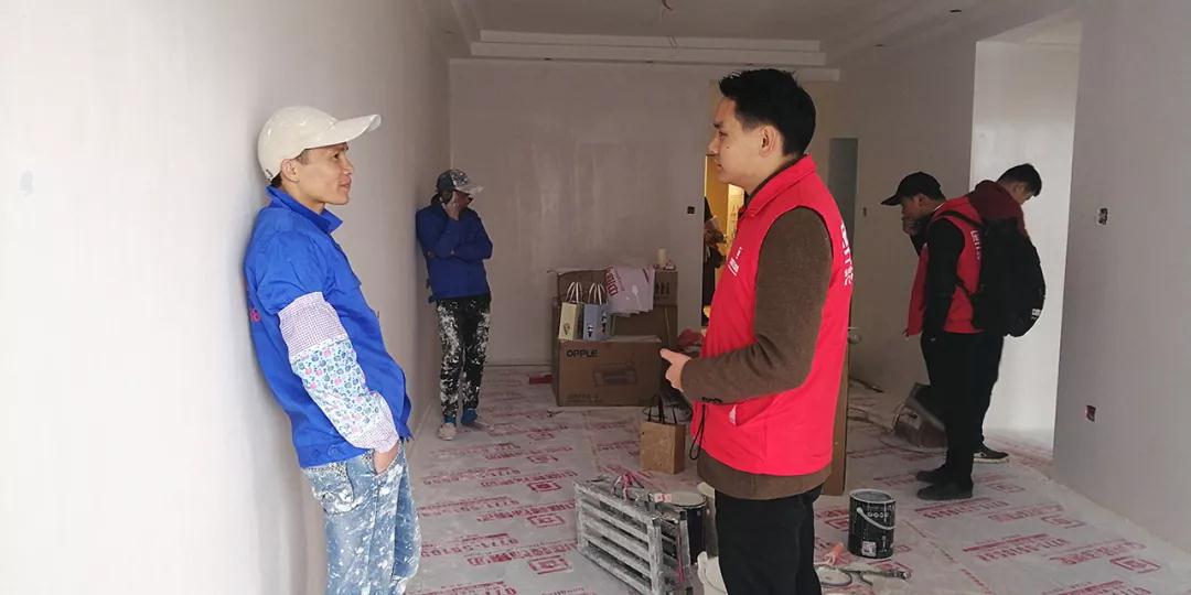 巡檢遇上業(yè)主正在施工現(xiàn)場,巡檢人員和業(yè)主交流;業(yè)主表示對公司的服務(wù)比較滿意,項目經(jīng)理和現(xiàn)場的工人都很好,有朋友需要裝修肯定會第一個推薦集團。