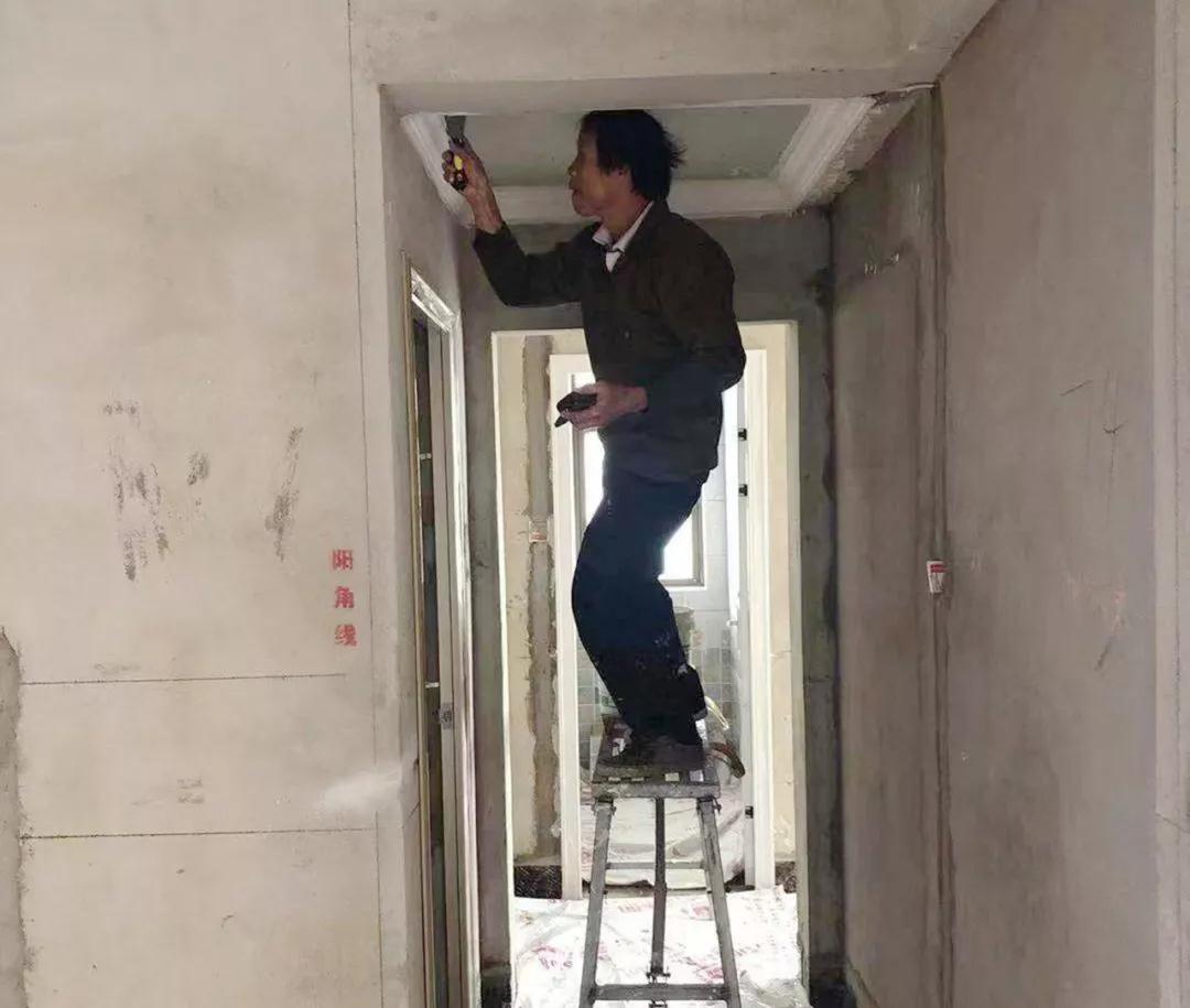 強光手電筒檢查陰角施工是否垂直平整
