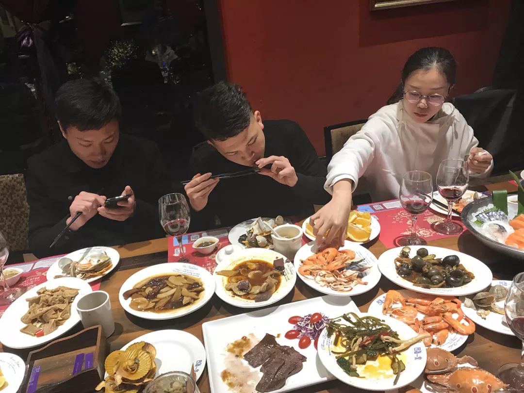 優(yōu)秀的家人們開心享用美食,品嘗他們奮斗的果實(shí)