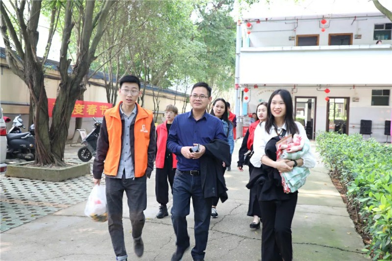 ▲集團(tuán)副總裁湯炬峰(圖中)帶隊(duì)到達(dá)敬老院