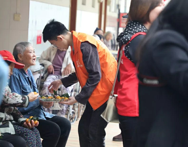 集團(tuán)家人們帶著水果走訪宿舍,邀請(qǐng)老人們來參加活動(dòng);同時(shí)也給行動(dòng)不便不能下樓的老人送去水果,關(guān)懷老人。
