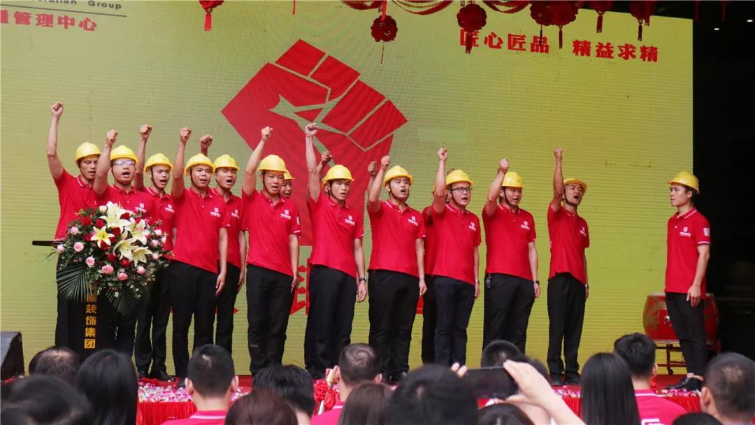 工程質量管理中心團隊登臺展示并進行宣誓,工程質量是企業(yè)的生命線,是我們發(fā)展的基石。秉承著“匠心匠品,精益求精”的品質理念,做到公平公正、有責必追、揚清抑濁、酬功給效;給客戶提供真誠、專業(yè)、迅速、周到的服務,打造打造環(huán)保、綠色、健康的居住環(huán)境。