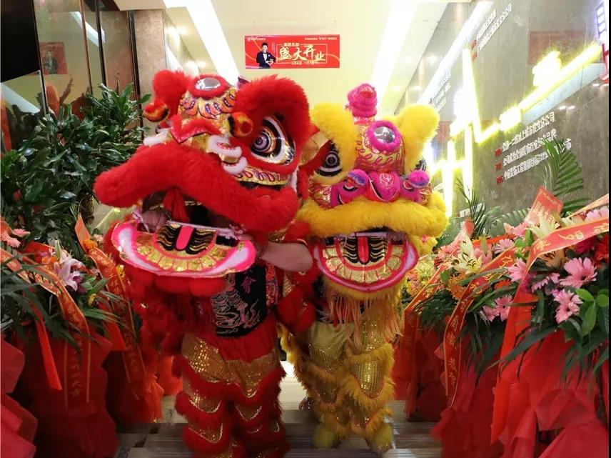 在鏗鏘有力、熱鬧非凡的鑼鼓聲中,火舞祥獅將寓意著“生財”的生菜送到集團總裁丁胡手中,為中庭裝飾集團獻上祥瑞的祝福。
