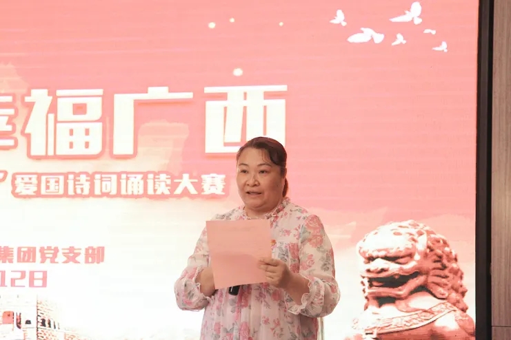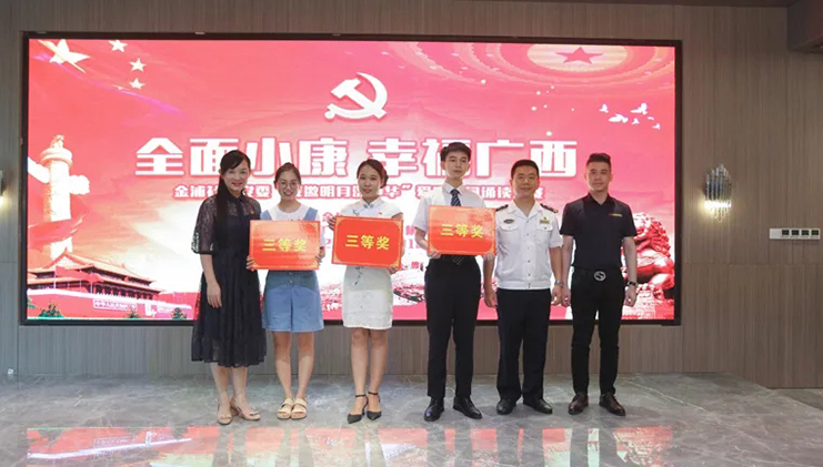 6月12日,在“七一建黨節(jié)”來臨之際,由浦社區(qū)黨委主辦、中庭裝飾集團(tuán)黨支部協(xié)辦的“全面小康 幸福廣西”愛國詩詞誦讀大賽在集團(tuán)二樓大廳成功舉辦。南寧市稅務(wù)局機(jī)關(guān)黨委、廣西海事局機(jī)關(guān)黨委、招商銀行金浦路支行黨支部、竹溪社區(qū)衛(wèi)生服務(wù)中心黨支部、廣西金孟錳業(yè)有限公司黨支部、同方知網(wǎng)黨支部、中庭裝飾集團(tuán)黨支部、北京外企人力資源黨支部、金浦社區(qū)轄區(qū)各級(jí)黨組織參加了本次活動(dòng)。