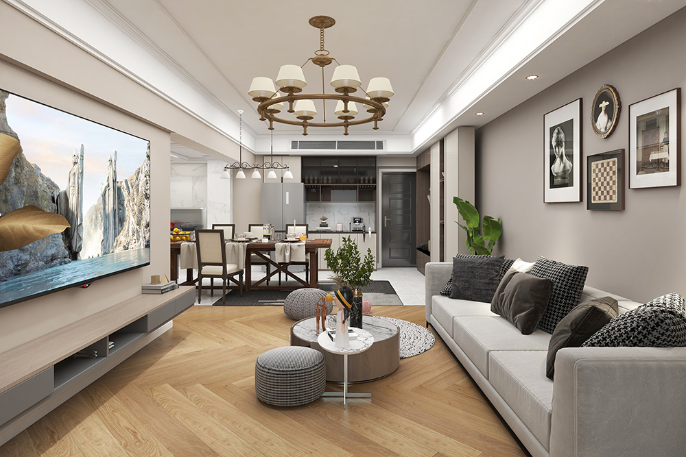 本案戶型為:3室2廳1衛(wèi),總面積108㎡,以紳士灰為視覺主線,清冷典雅卻豐盈柔軟的空間,線條與紋理進(jìn)行著理性而有序的輸出,為空間注入低調(diào)而簡(jiǎn)雅的品質(zhì)與意蘊(yùn),營(yíng)造出一種屬于現(xiàn)代人的優(yōu)雅與高級(jí)空間感。