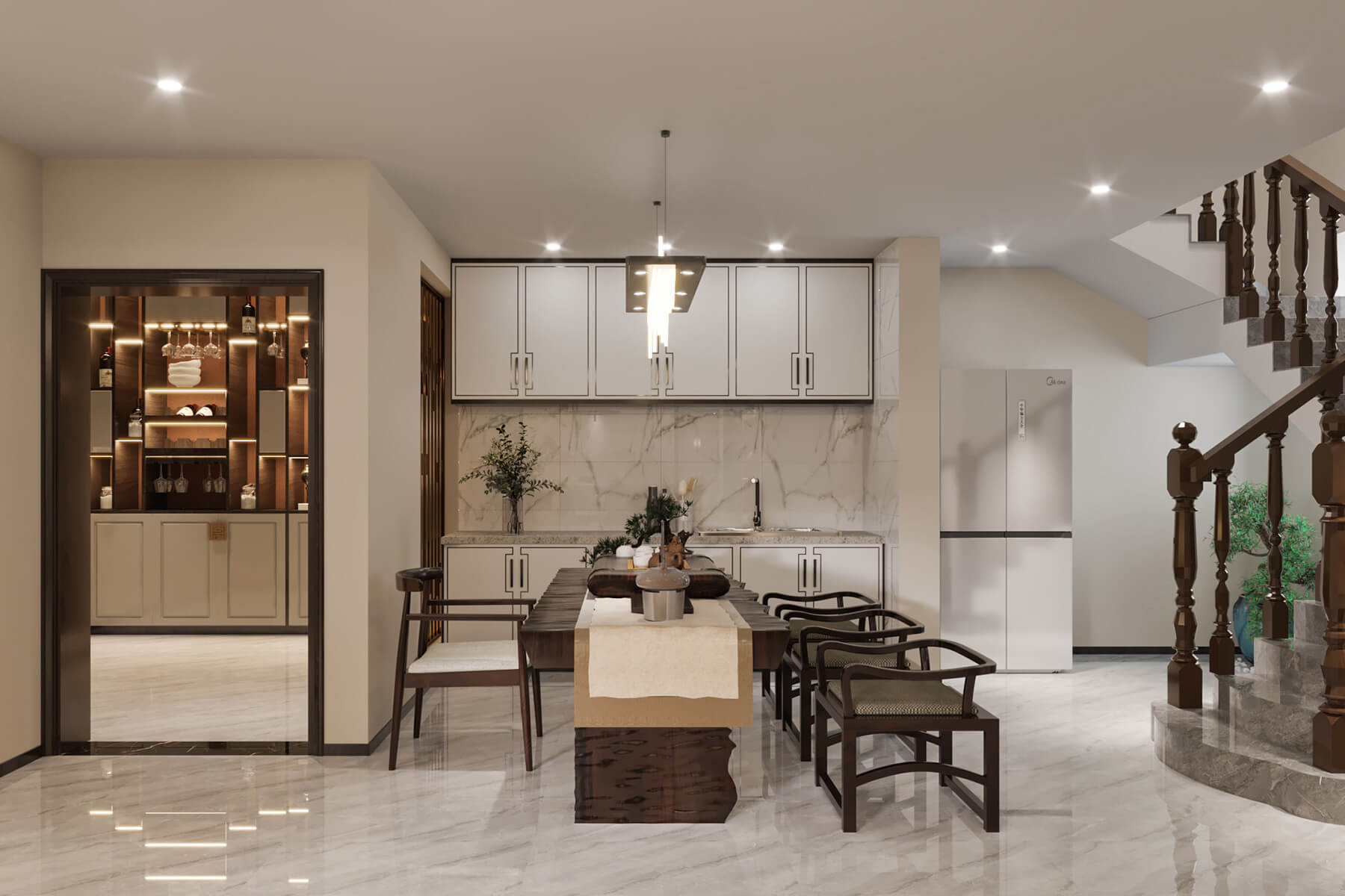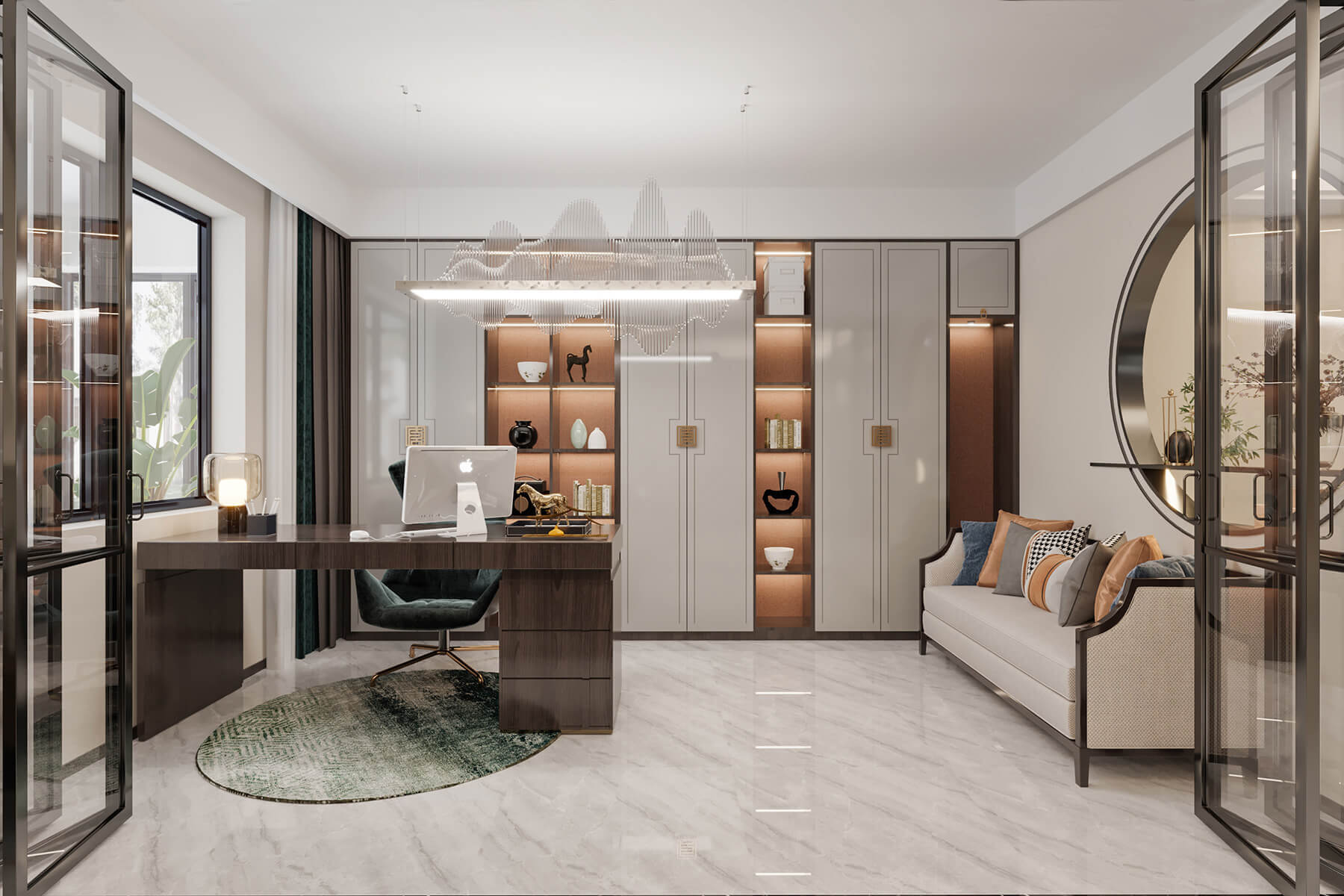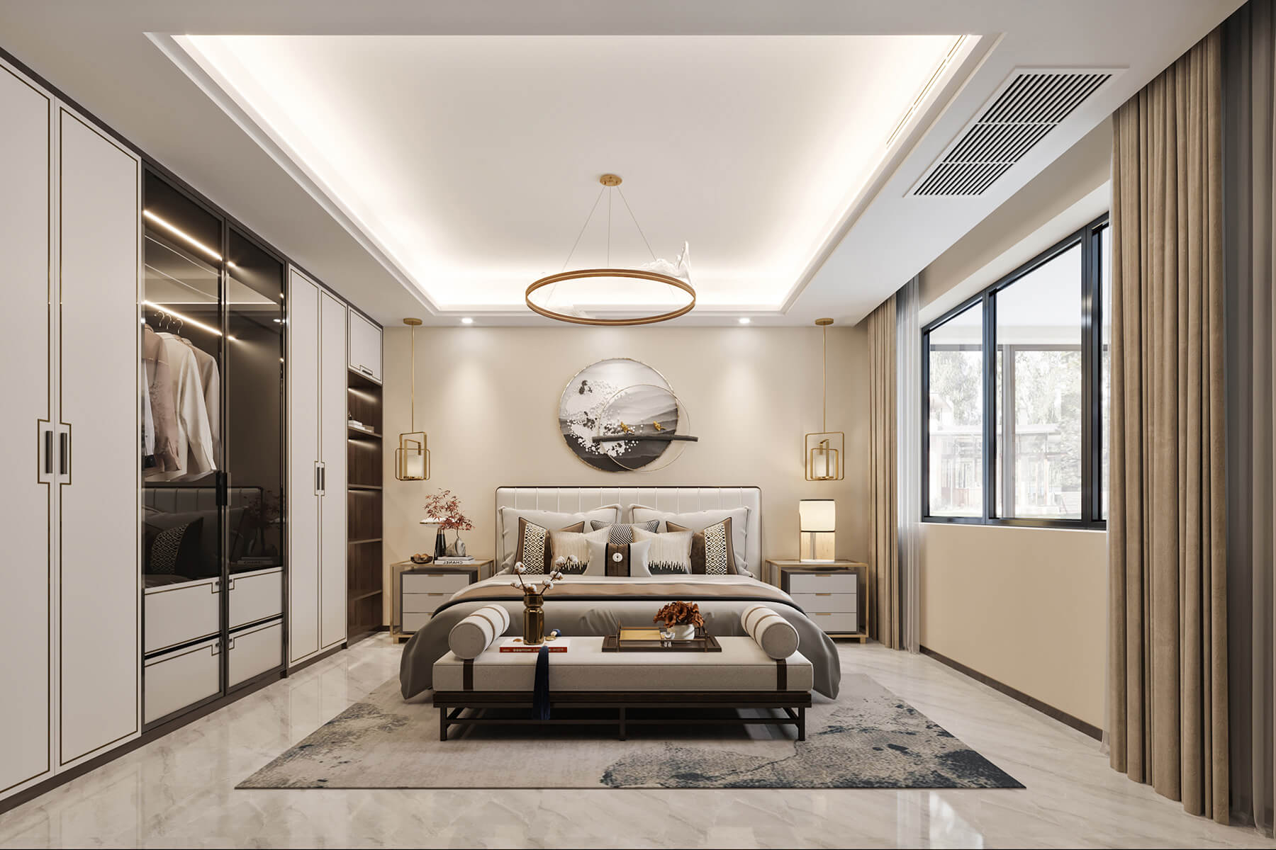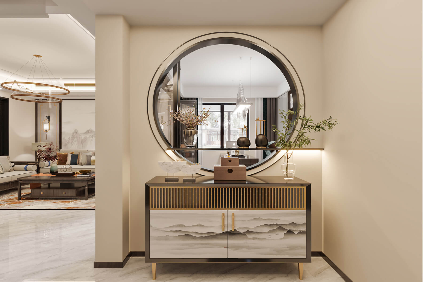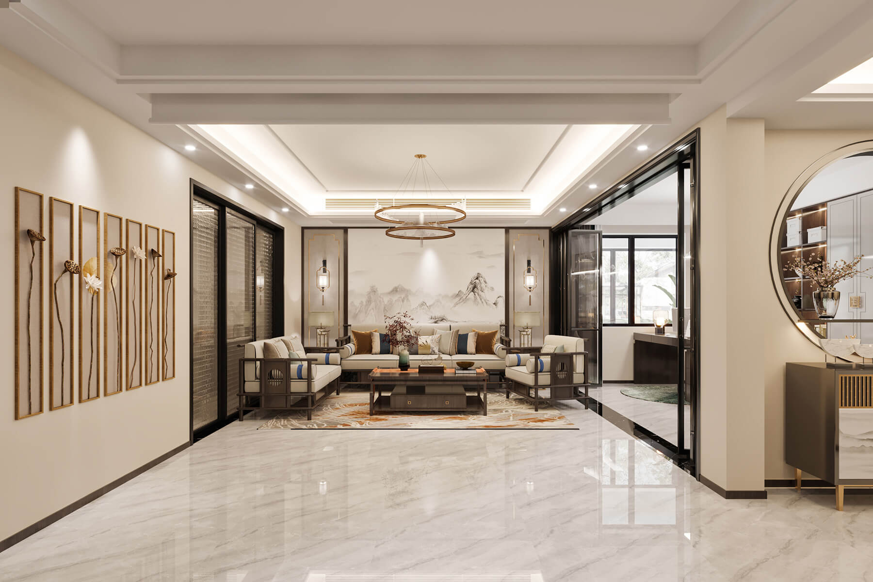 瀏覽量:802本案總面積136㎡,整體采用新中式風(fēng)格設(shè)計(jì)。沿襲傳統(tǒng)江南風(fēng)情,蘊(yùn)藏著悠然詩意的傳統(tǒng)文化在空間中娓娓道來。東方的風(fēng)韻與藝術(shù)的雅致,以簡練的手筆,營建清寧澄凈的氣質(zhì)與芳華。