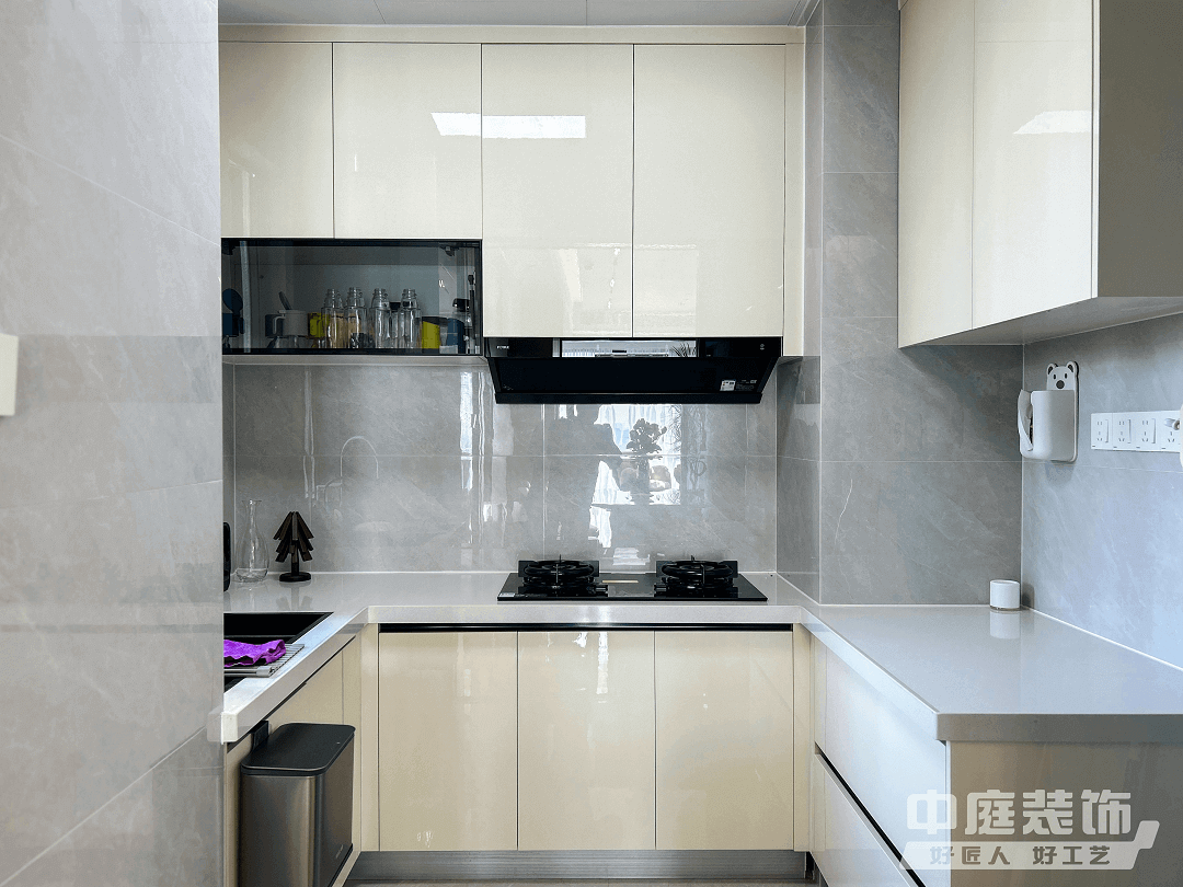 餐廳:開放廚房與餐廳結(jié)合,形成餐、廚一體空間。所有廚房電器嵌入式設計,并按照業(yè)主烹飪習慣布置,保證操作動線便捷、合理。