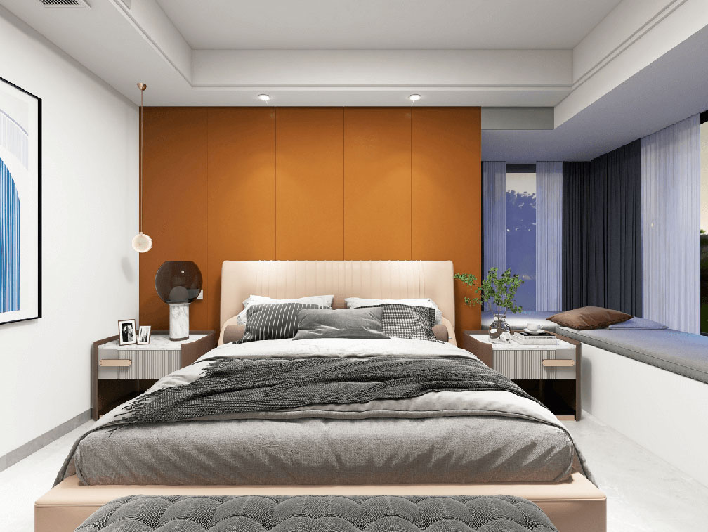 造型簡(jiǎn)潔,線條流暢的家具組合搭配,營(yíng)造出穩(wěn)定、協(xié)調(diào)、溫馨的空間感受,滿足現(xiàn)代年輕家庭的輕奢需求。